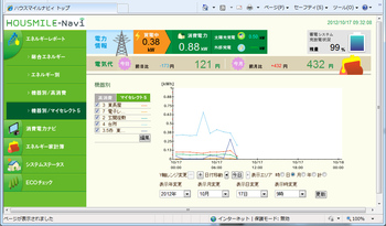 エコロジー, 我が家の行事 連系開始 2012年10月17日 t-ueda コメントする ソーラー蓄電池システムが完成したので今日から稼働ですが、残念ながら今日は雨です。 http://www.t-ueda.jp/eco/index2.html