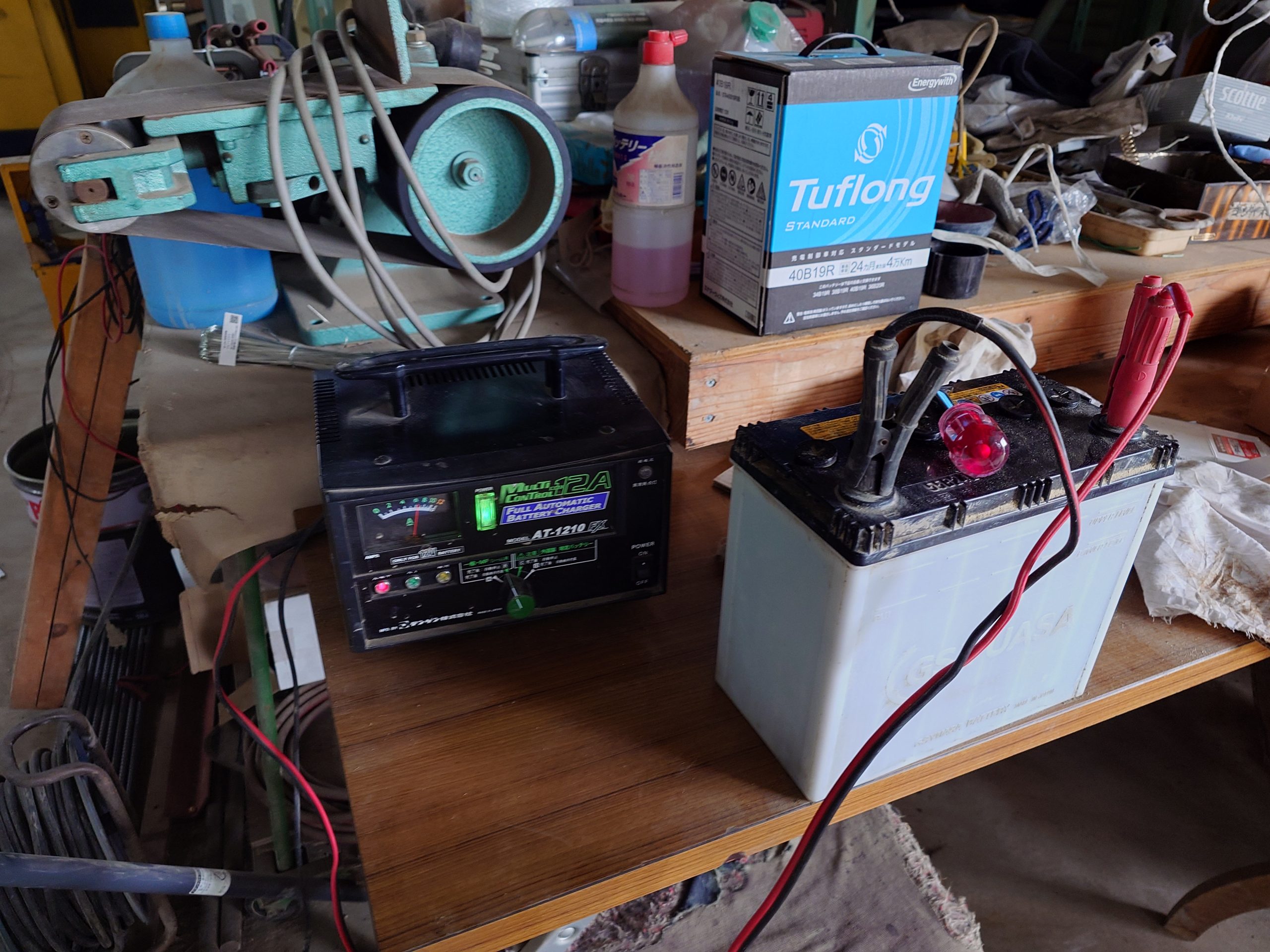 稲刈りに向けて準備してます。コンバインのバッテリーが上がっていたので、とりあえず充電・・・稲の実り具合の点検・・