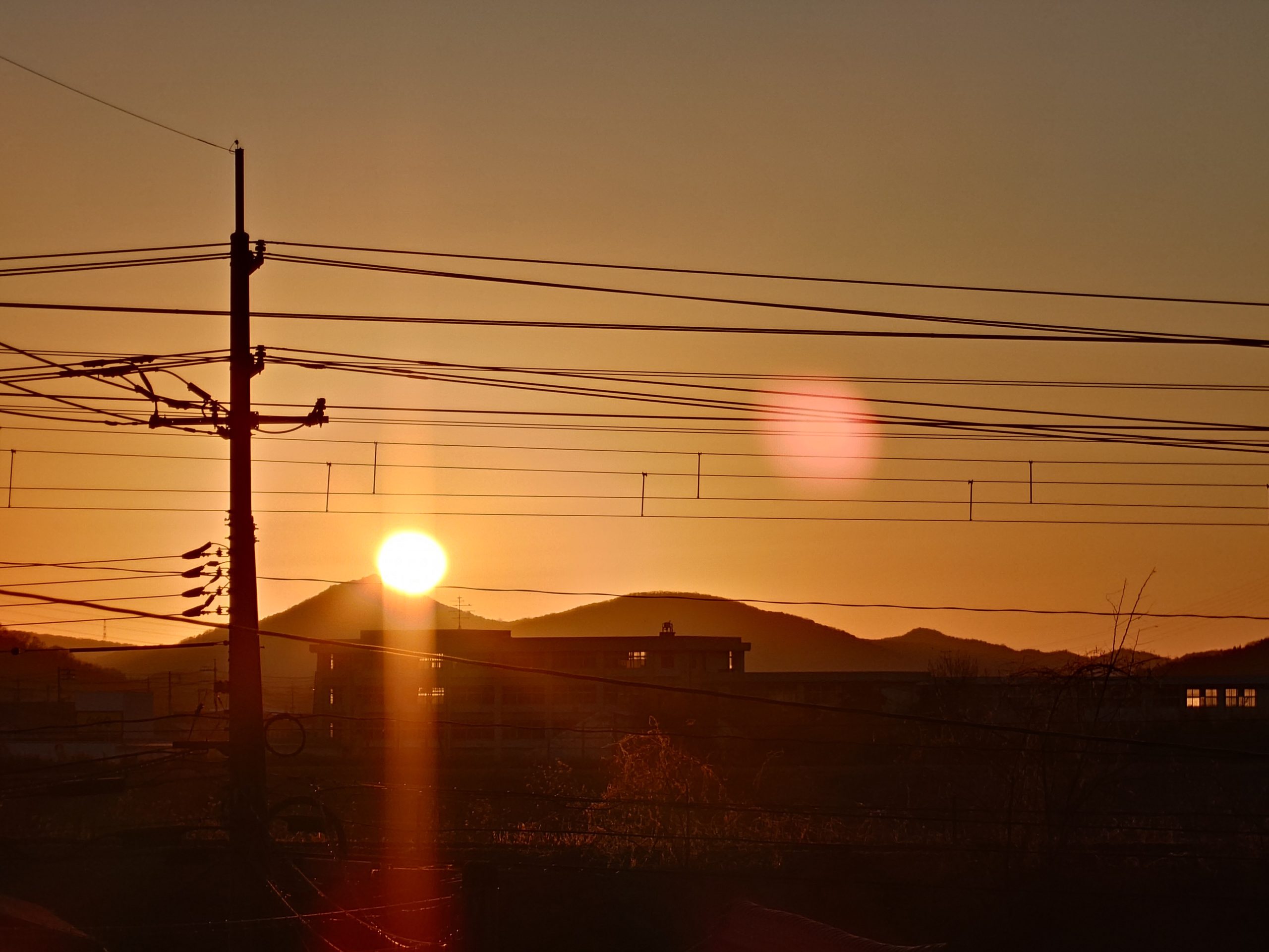 我が家は正面に初日の出が昇りますが山陽本線の線路とかぶります。今日は地元の神社の元旦祭