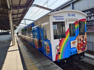 瀬戸芸の帰りに宇多津から児島まで瀬戸大橋線に乗ったら、アンパンマン列車だった。