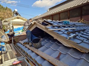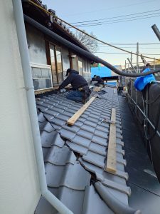瓦の隅などの仕上げにかかっています。手間がかかりますね