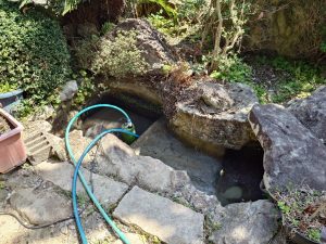 池の水漏れを放置していましたが、先日から急速セメントで補修しています。そのうち鯉でも飼おうかな